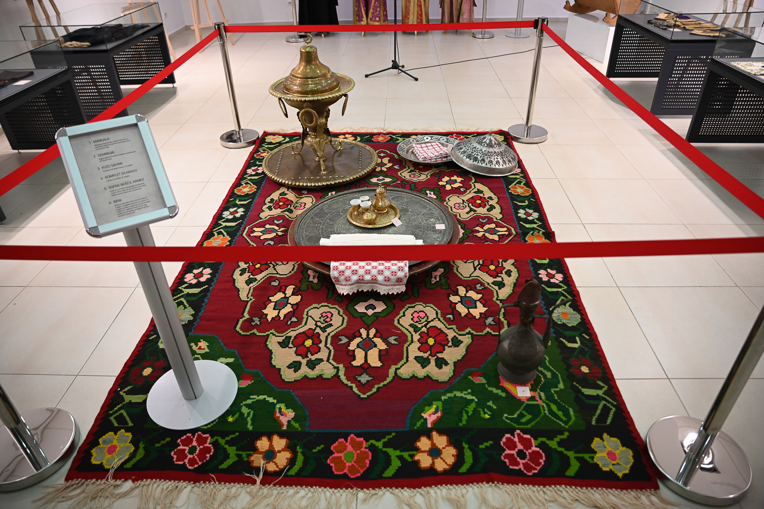 Posjetioci će imati priliku u centralnom dijelu galerijskog prostora vidjeti metalne predmete koji svjedoče o vještini domaćih kazandžija i majstora zanata. Među njima ibrik rahmetli hadži hafiza Smail-ef. Fazlića iz Sarajeva s kaligrafski ispisanom posvetom na arapskom jeziku, u kojoj piše da je taj ibrik dobio 1937. godine od hadži Osman-age Serdarevića iz Ljubinja, za kojeg je te godine kao bedel, obavio hadž. Tu su i mangala – mesingana konstrukcija u kojoj se držao žar, demirlije – bogato izgravirana bakarna tepsija za posluživanje i serviranje hrane, kuzi sahan – posuda za serviranje hrane iz 19. stoljeća, kao i komplet za kahvu s kraja 19. i početka 20. stoljeća. Također, izložena je i bošča koja je izrađena od ručno tkanog platna.