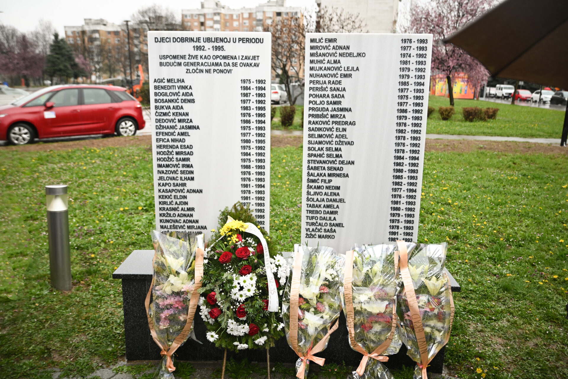 Položeno je cvijeće i odata počasti ubijenoj mladosti Dobrinje uz prisustvo roditelja i drugih članova porodica ubijene djece, prijatelja, Udruženja roditelja ubijene djece opkoljenog Sarajeva 92-95, predstavnika Općine Novi Grad Sarajevo, Općinskog vijeća Novi Grad Sarajevo, MZ „Dobrinja B“, učenika i nastavnika Osnovne škole „Skender Kulenović“.