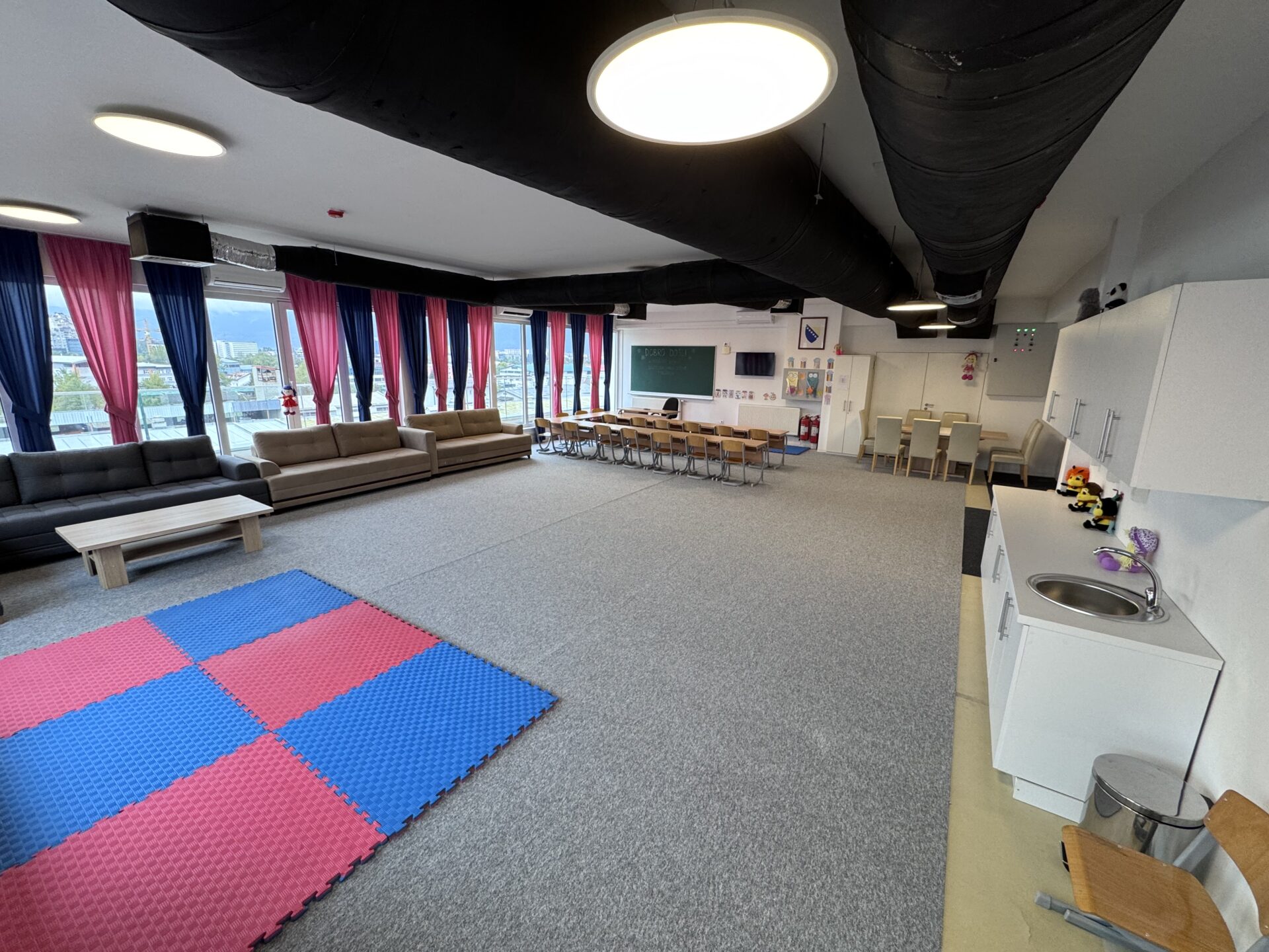 Prostorije koje je Općina Novi Grad Sarajevo ustupila školi, nalaze se u dijelu dvorane koji je bio predviđen za sportske djelatnosti, međutim, kako se javila potreba za uvođenjem prostora produženog boravka, u razgovorima sa menadžmentom škole došlo se do rješenja da to bude upravo ovdje.